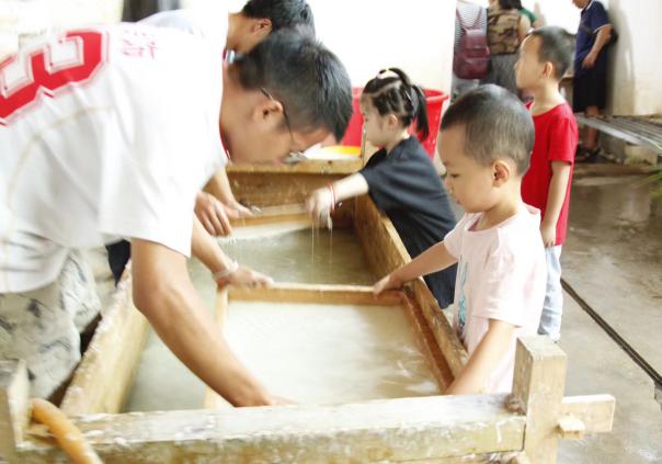 D5-丹寨万达小镇酒店→(0.5h)丹寨石桥村纸街体验古法造纸上午→(0.5h)清江苗寨体验蜡染制作(上午)→(下午)清水江玩水抓鱼→(1h)万达小镇酒店 上午8点前往但丹寨石桥村体验古法造纸,造纸体验完之后前往清江苗寨体验苗族蜡染制作,最后玩水摸鱼,返回酒店休息。 石桥村是一个以古老的手工造纸而远近闻名的村子,这个苗族村寨里居住着250户人家,而以造纸为生的就高达40余户,是名副其实的造纸村。手工造纸这一传统是唐朝中期就开始的,尽管现代造纸业越来越发达,手工造纸不太赚钱,但村里的这一传统工艺一直保持完好至今。