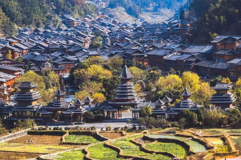 D4 肇兴侗寨—黄岗侗寨—岜沙苗寨—从江,住从江 上午早餐后,乘车前往黄岗侗寨。黄岗侗寨与肇兴的规模与成熟不同,黄岗侗寨更像一个被时光轻轻遗忘的秘境。这里是男声侗族大歌的发源地,寨子更为原始古朴,鲜有商业气息。高大的禾晾架上挂满金黄的稻谷,构成独特的秋冬季景观。在这里,您能更真切地感受到侗族人“饭养身,歌养心”的生活哲学。