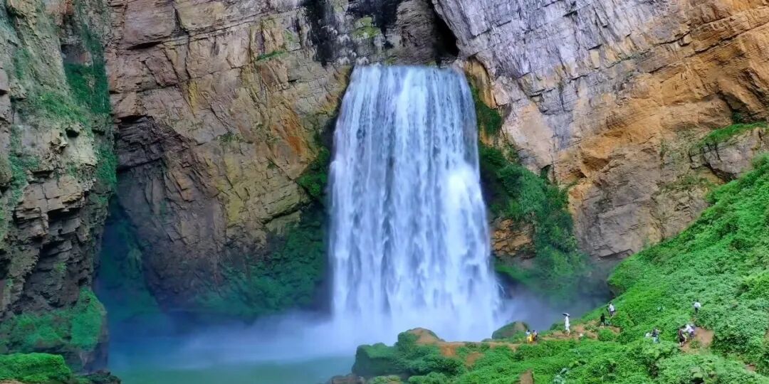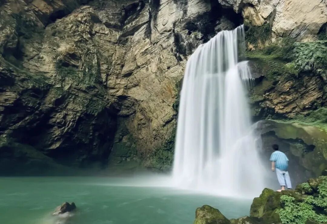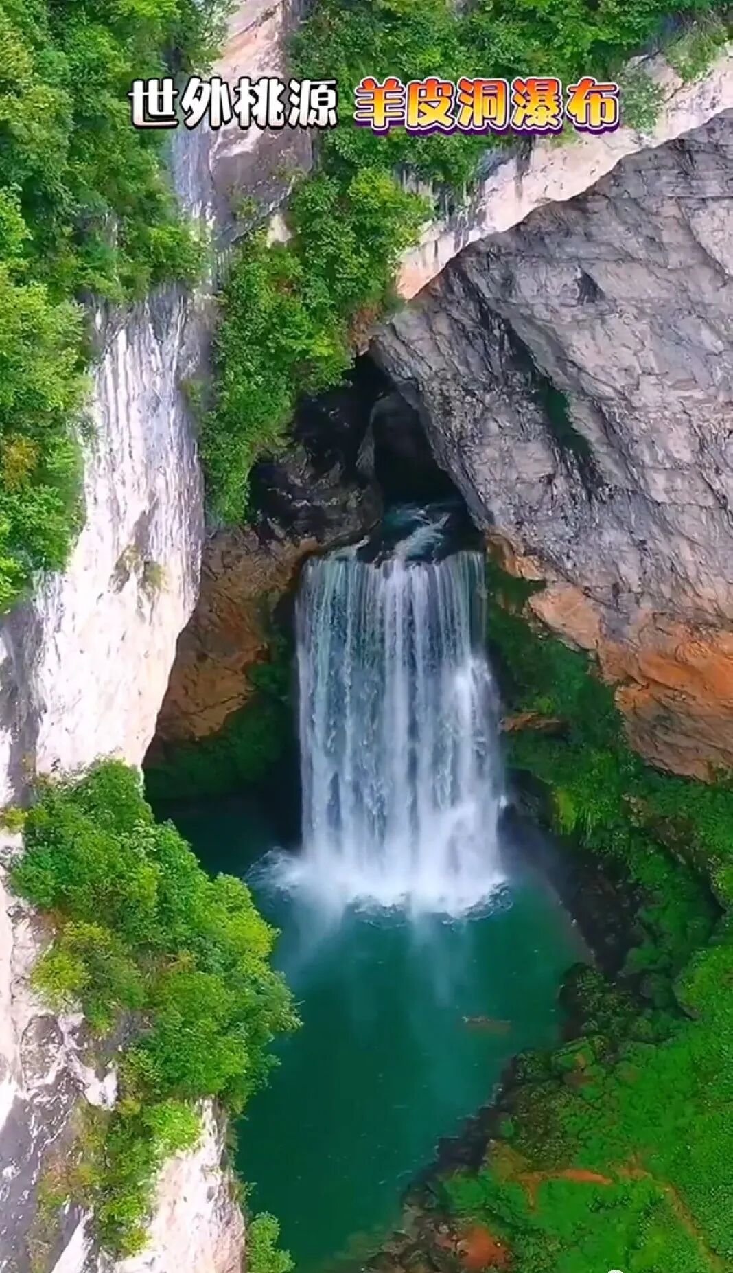 六、惊险绝美-羊皮洞瀑布不得不承认,抖音视频带火了很多的小众景点和鲜为人知的惊艳圣地。贵州的羊皮洞瀑布就是其中之一,近期因其惊险刺激壮丽、高深莫测最原始的面貌快速登上热搜榜。