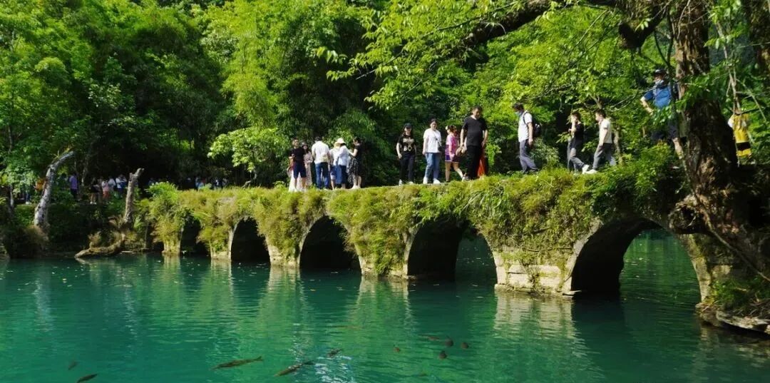 十、人间绿宝石-荔波小七孔“山是眉梢聚,水是眼波横”,19年房琪的一条短视频在抖音上爆红,“假如生命中只有一次领略到江河的好机会,将它交给荔波吧。”很多人都以为这也是旅游博主的惊鸿一瞥,却不知道这短短一分钟里,就是他们第一次与地球裤带里的“白金光”相逢。