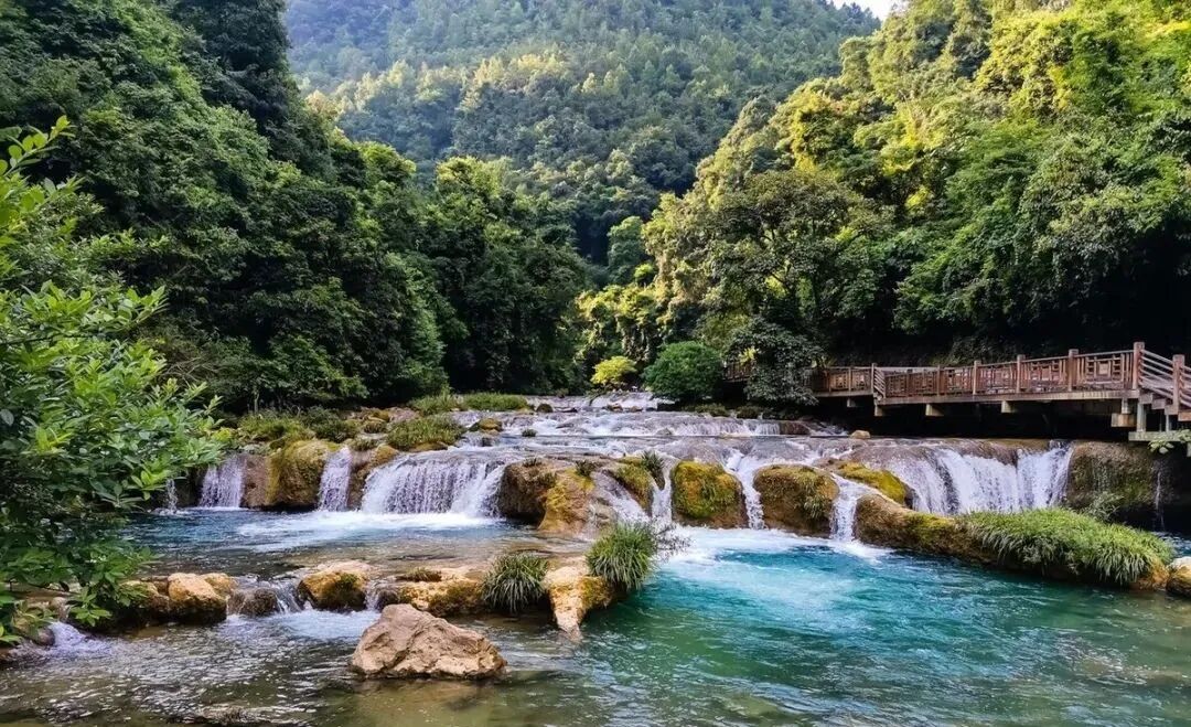 位于上游的陡坡塘瀑布是86版西游记的取景地